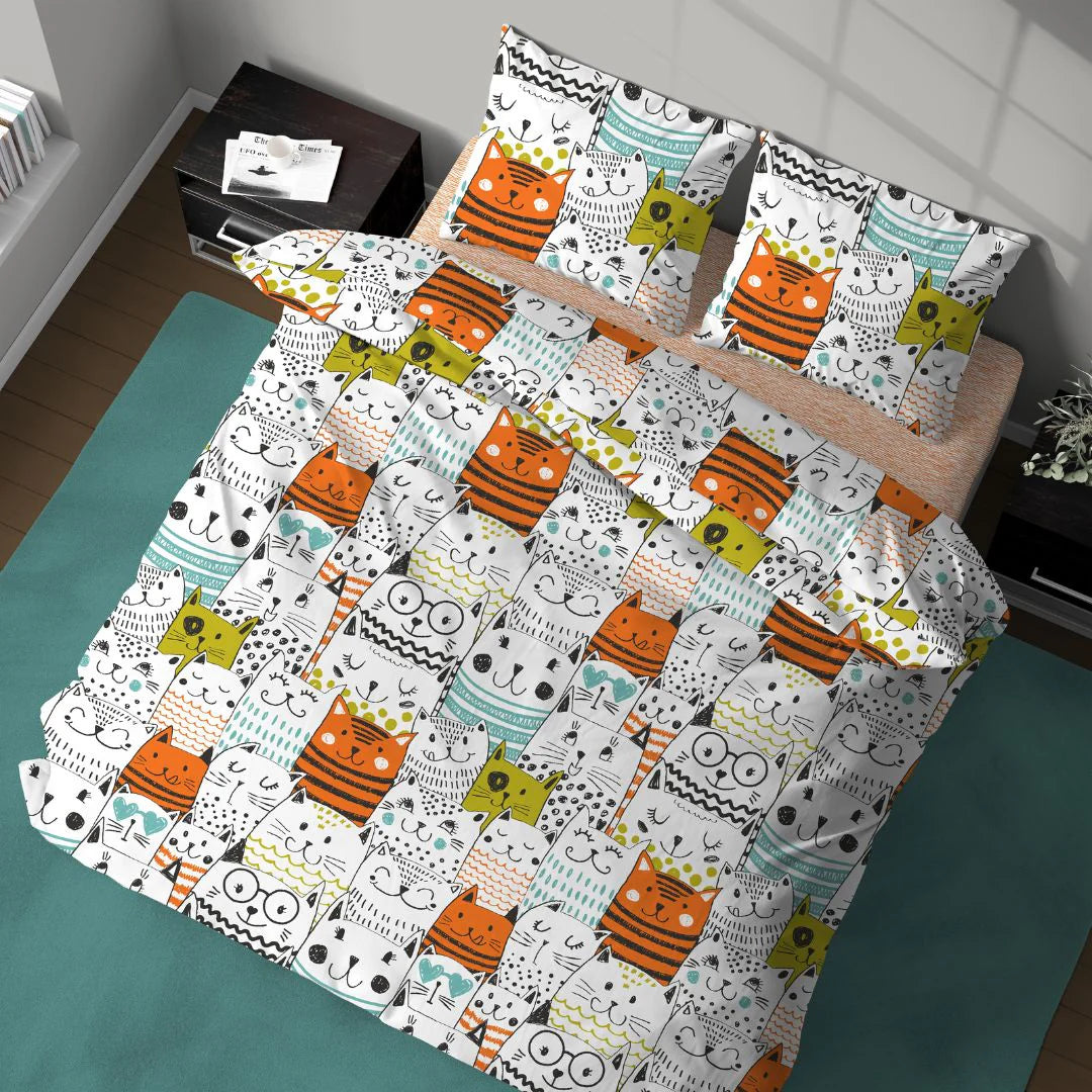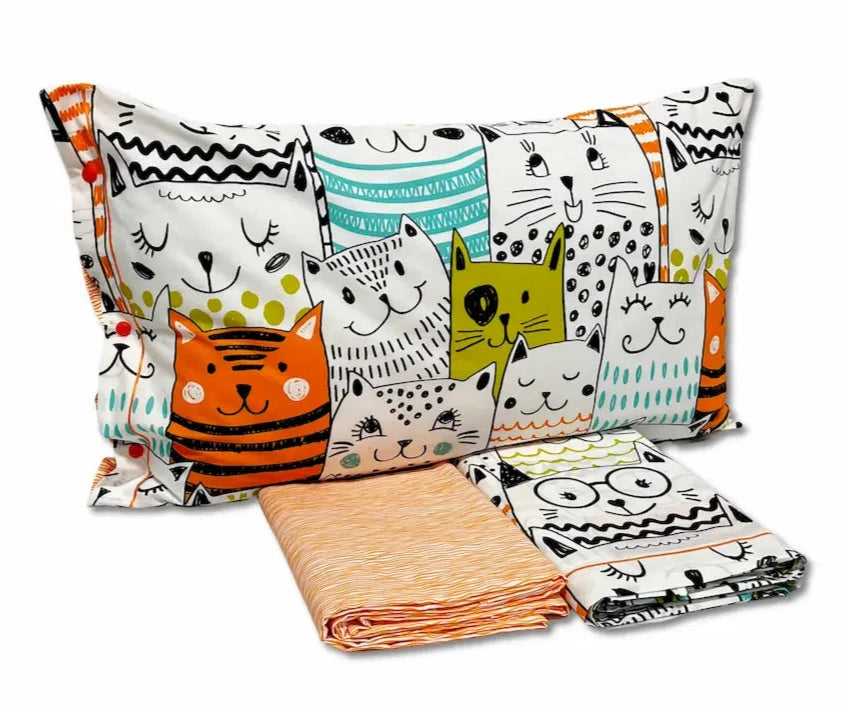 Completo lenzuola GATTINI in FLANELLA di cotone