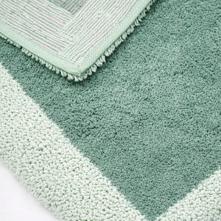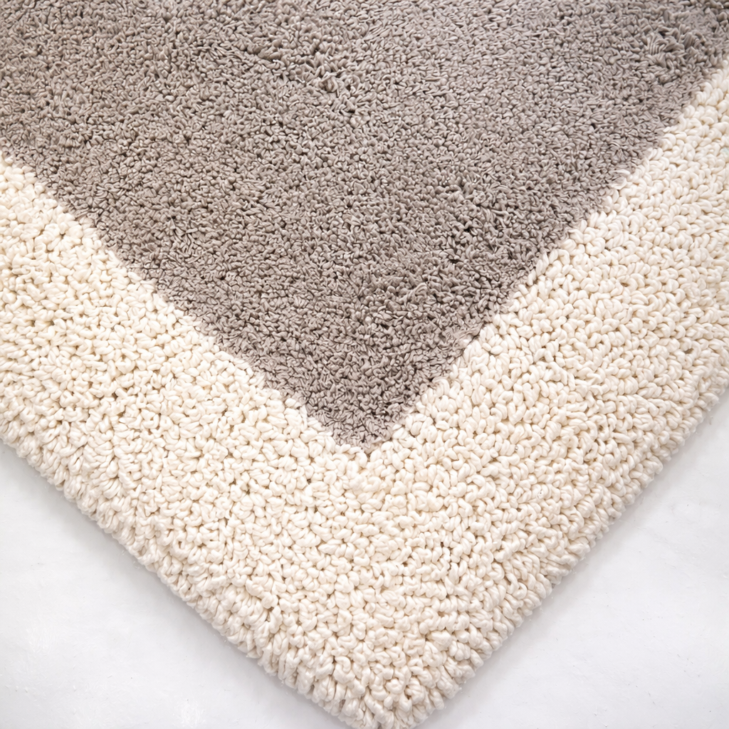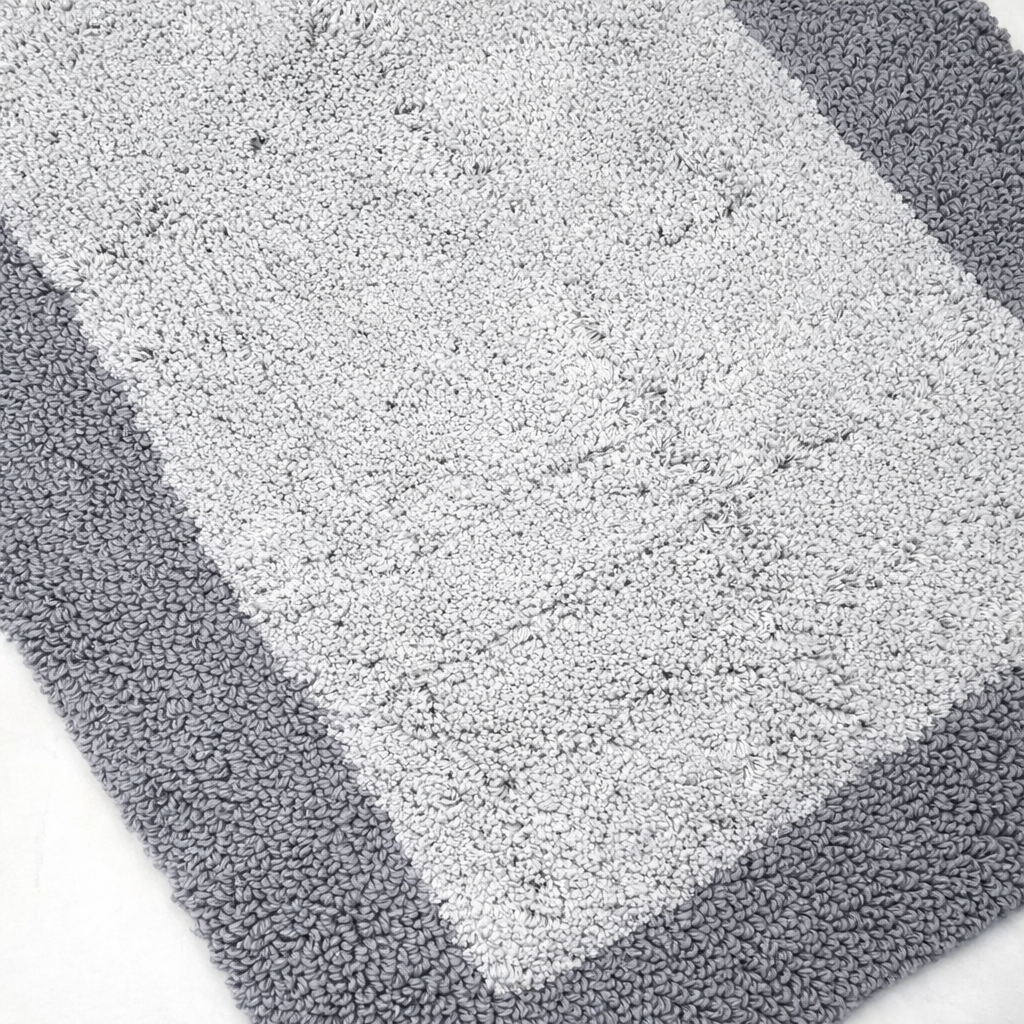 Rinnova il tuo bagno con stile e funzionalità grazie a questo tappeto realizzato in spugna di cotone, pensato per offrire comfort e massima assorbenza. La morbida texture in spugna assorbe rapidamente l’acqua e il fondo antiscivolo, garantisce stabilità e aderenza su tutte le superfici. Il design bicolore con cornice a contrasto aggiunge un tocco elegante e moderno a qualsiasi ambiente.