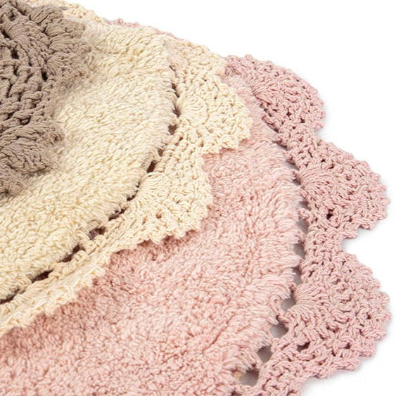 La sua forma, il bordo finemente lavorato e le quattro colorazioni disponibili (rosa, azzurro, panna, tortora) lo rendono un complemento perfetto per ogni ambiente.