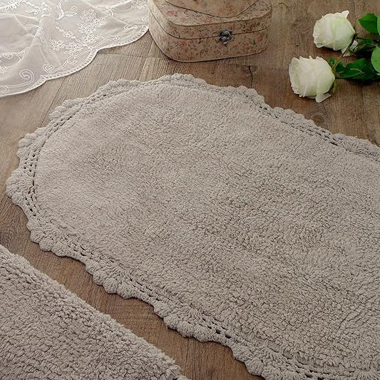 Il tappeto Leyla, dallo stile shabby, romantico ed elegante, è ideale per qualsiasi bagno. Realizzato al 100% in soffice spugna di cotone, offre comfort e sicurezza grazie al resistente fondo antiscivolo.
