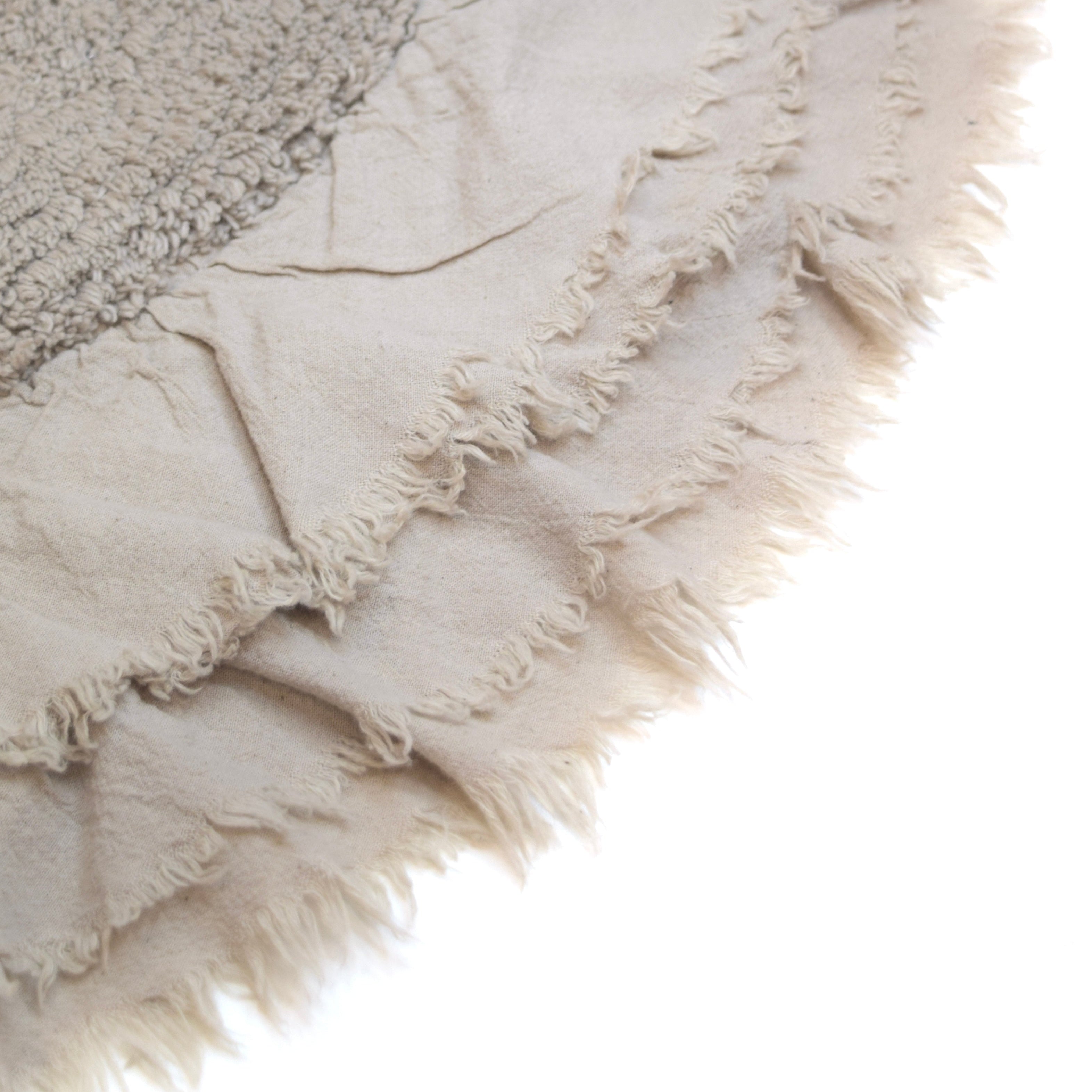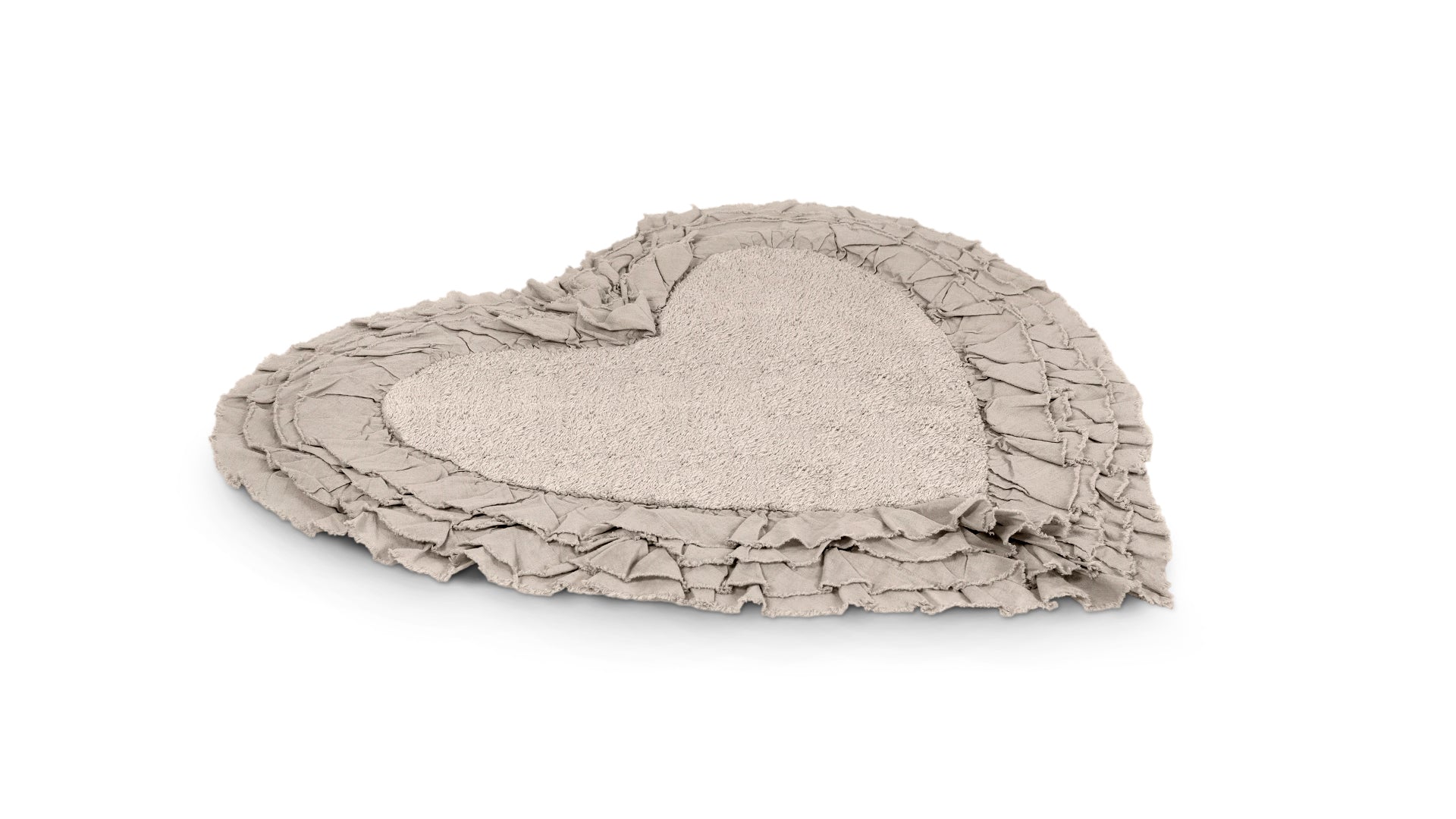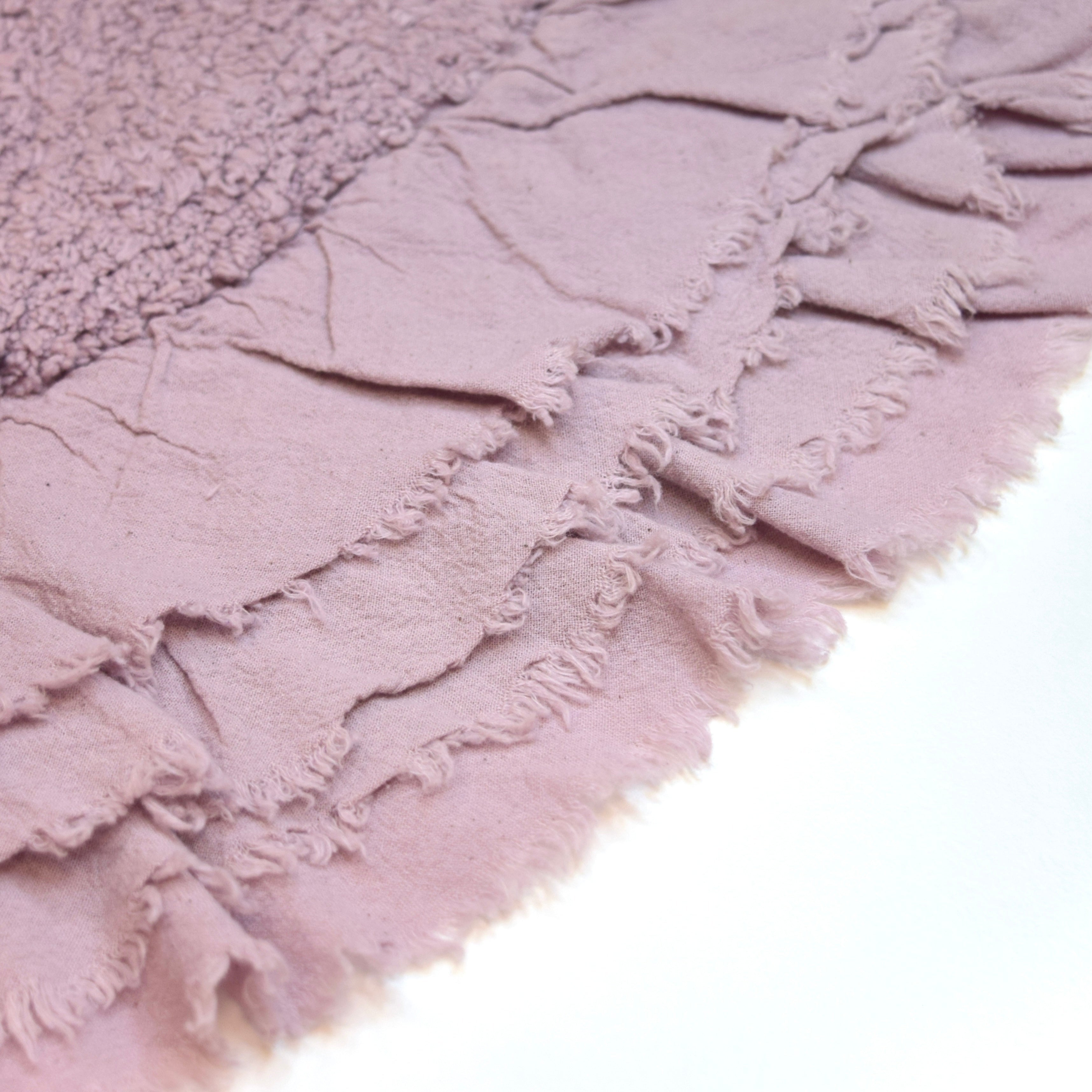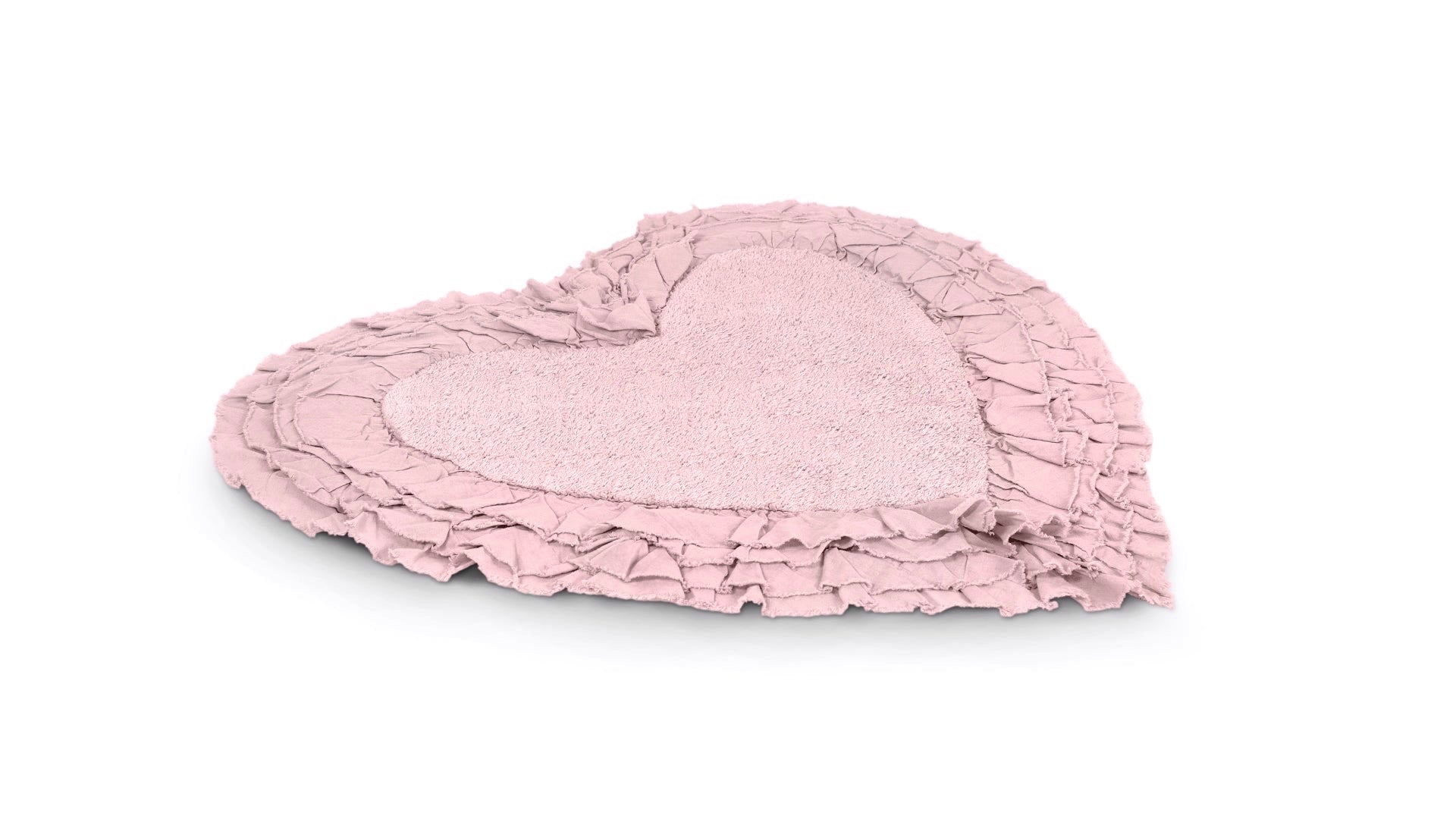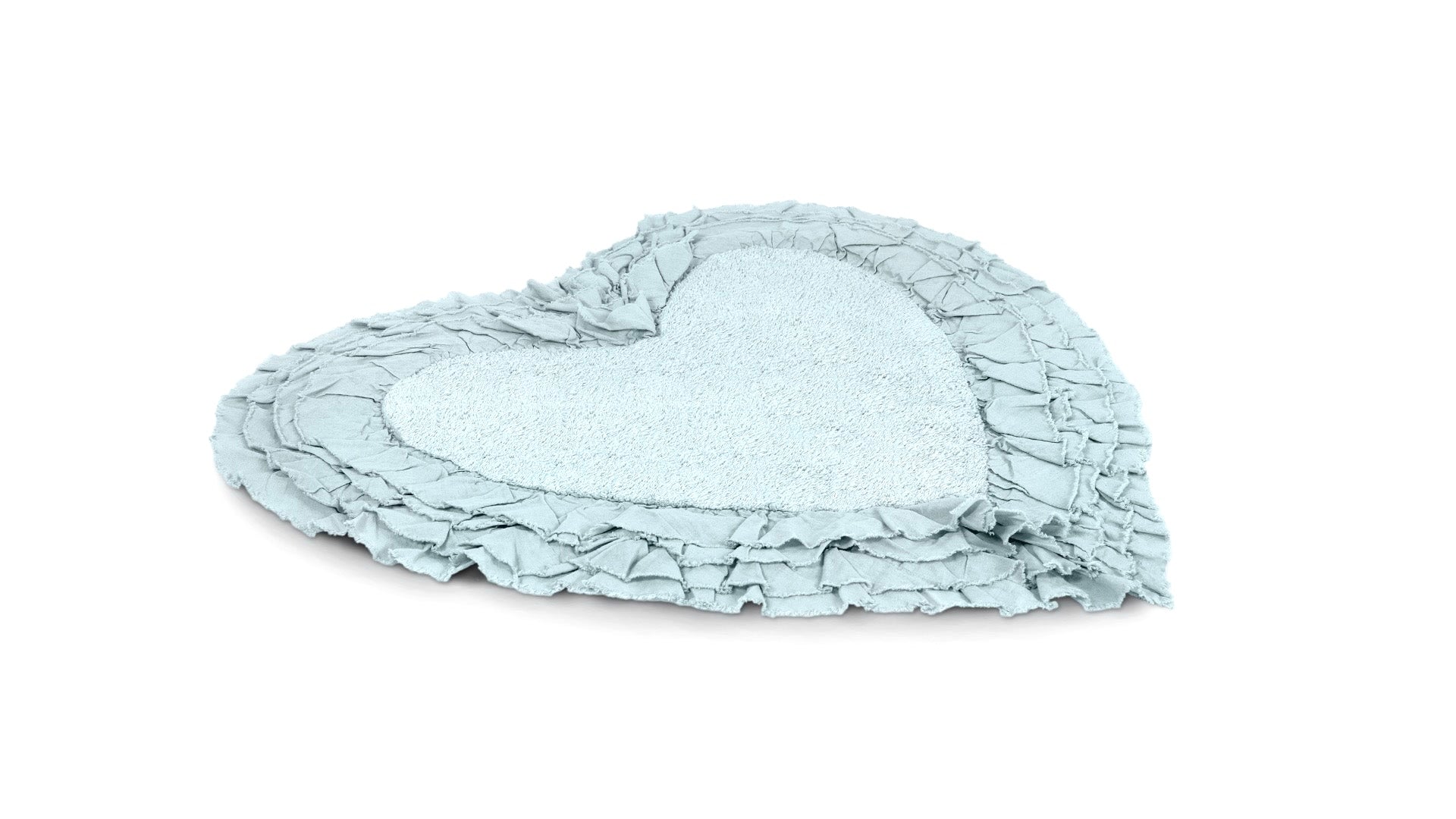 La sua forma, il bordo finemente lavorato con triplo volant e le sei colorazioni disponibili (rosa, malva malva, azzurro, panna, tortora, grigio) lo rendono un complemento perfetto per ogni ambiente.
