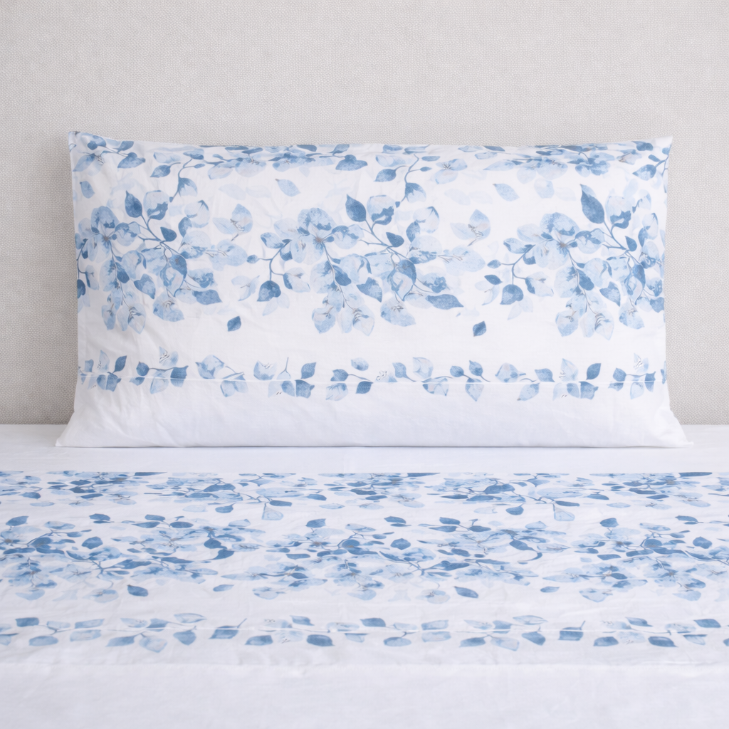 Completo lenzuola matrimoniale in 100% cotone stampato. Una tela semplice, ma di qualità; ideale compromesso per chi cerca un riposo naturale senza rinunciare alla convenienza. Sopra, sotto e federe in fantasia.