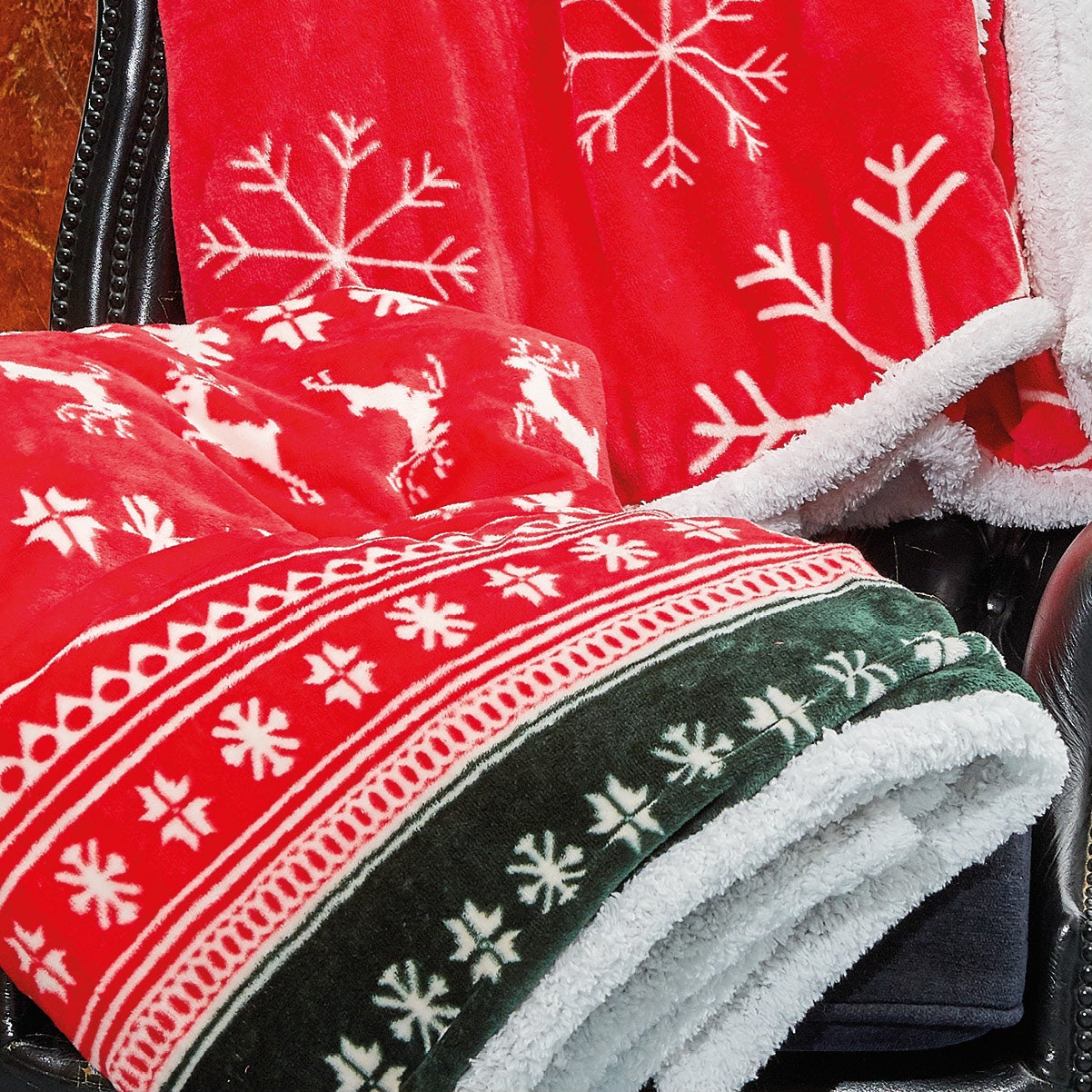 Porta la magia del Natale nella tua casa con la nostra coperta Lapponia, un abbraccio caldo e avvolgente nei toni intensi del rosso. Disponibile in due varianti: una verde bosco/rossa e una bianca/rossa.