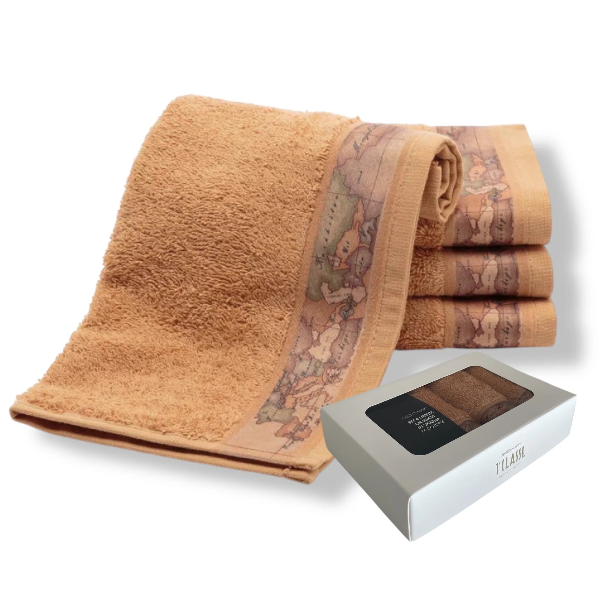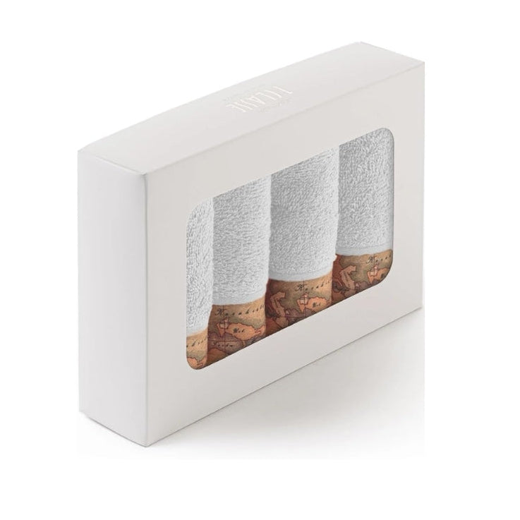 Le lavette Alviero Martini 1ª Classe Geo Classic uniscono la sofisticatezza del design italiano alla funzionalità di tutti i giorni. Il set comprende 4 lavette 30x30cm realizzate in soffice spugna di puro cotone 480 gr/m², pensata per garantire comfort e assorbimento ottimali. Il bordo con l’iconica stampa Geo Classic dona un tocco di stile unico e riconoscibile.