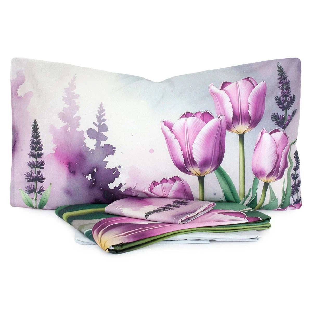Scopri l'eleganza e il comfort della nostra collezione lenzuola effetto copriletto, realizzati in 100% cotone con stampa digitale ad alta risoluzione, che dona un tocco di stile e freschezza alla tua stanza. Le federe e il lenzuolo da sopra sono in fantasia, mentre il lenzuolo da sotto è in tinta unita, abbinato alla balza a giorno.