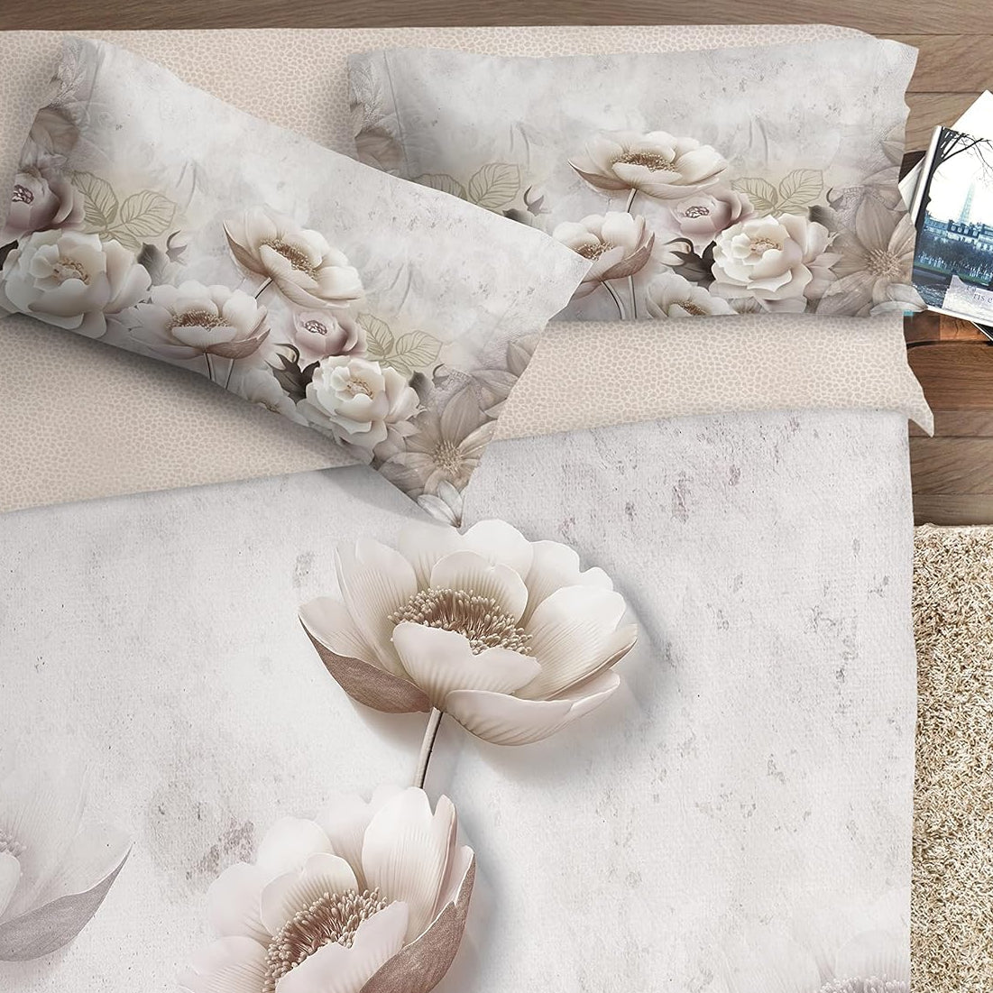 Parure copripiumino in stile fotografico pensato per chi desidera portare l’arte anche in camera da letto. Il design unisce eleganza e impatto visivo in un tessuto di qualità superiore. Realizzato in finissimo cotone 60 fili mano Percalle.