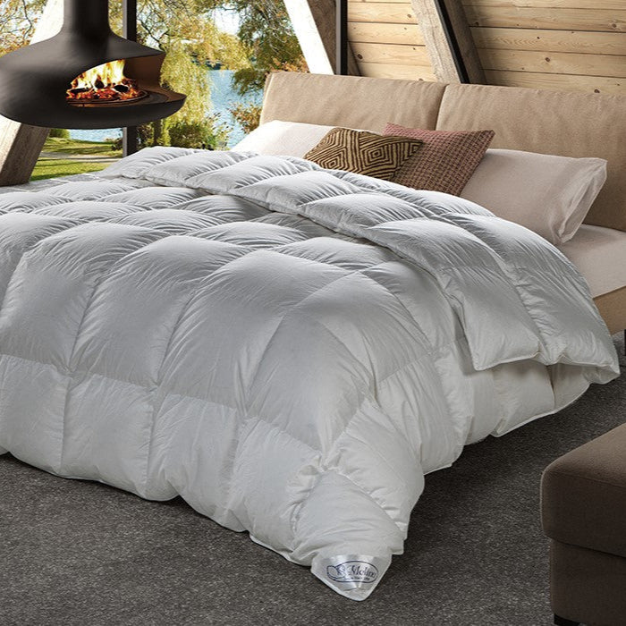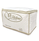 Questo piumino firmato Molina, realizzato in 100% piumino d'oca siberiana, offre un perfetto equilibrio tra calore e leggerezza, ideale per le mezze stagioni e l'inverno. Una qualità tutta Made in Italy, che garantisce alta traspirabilità e mantiene il calore per tutta la notte senza far sudare.