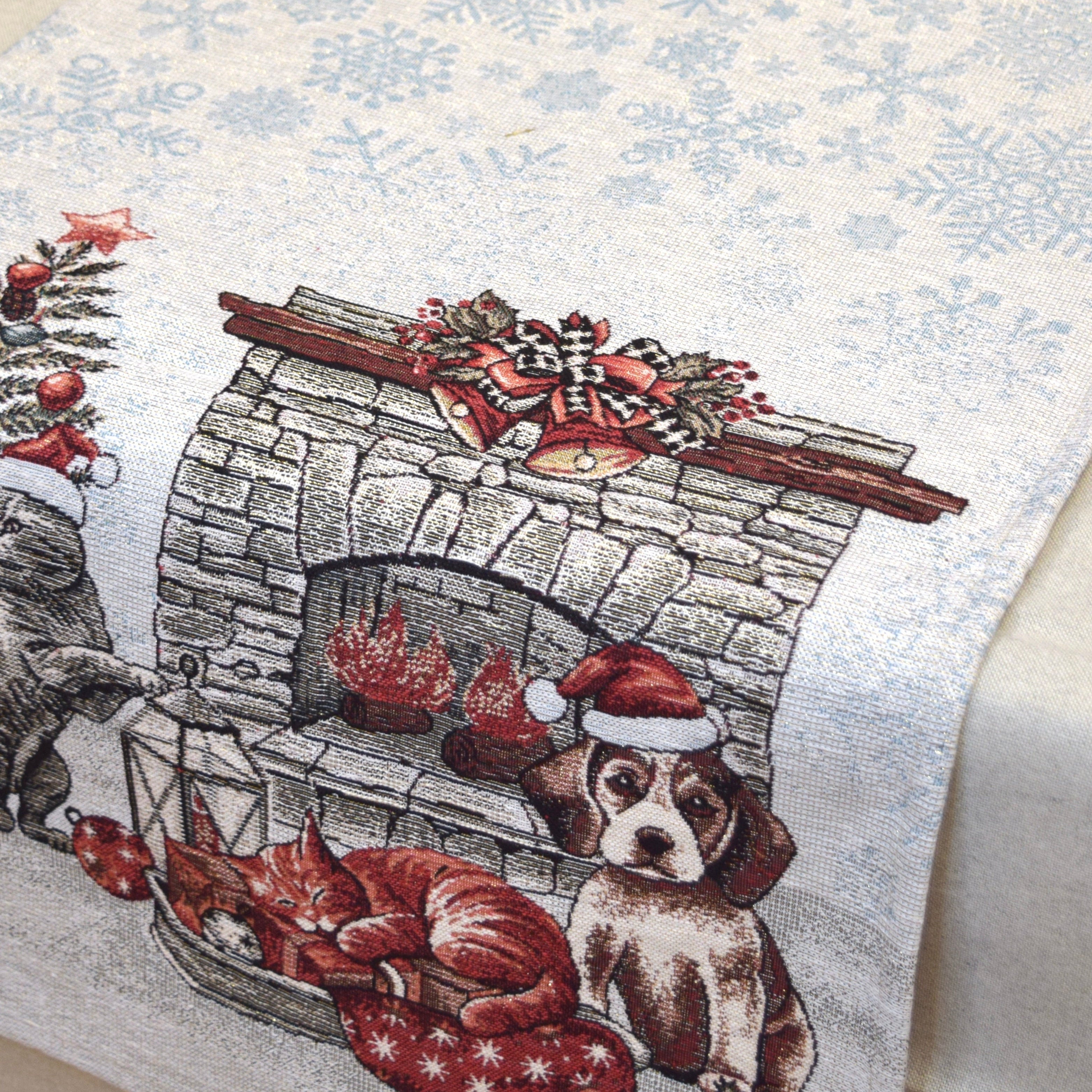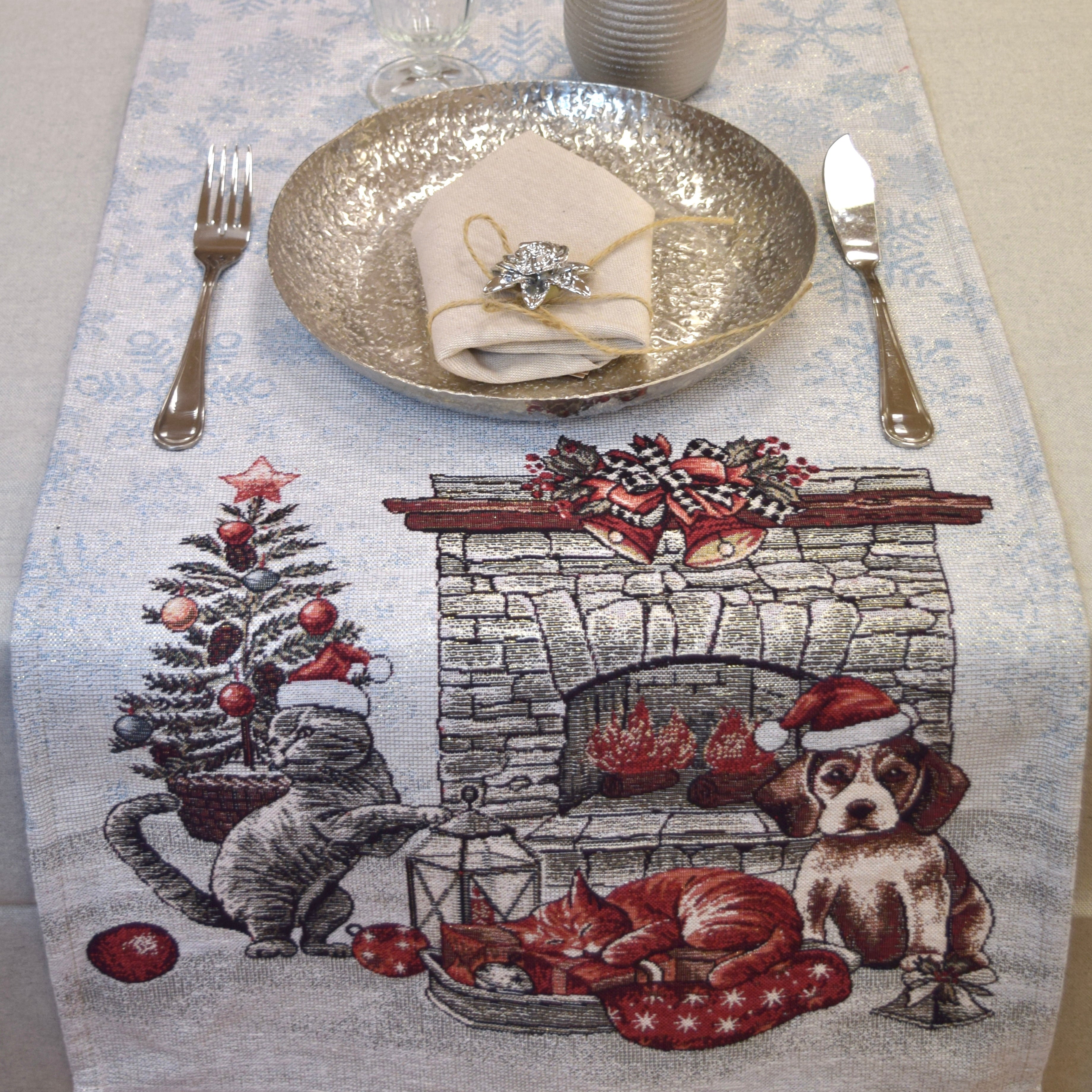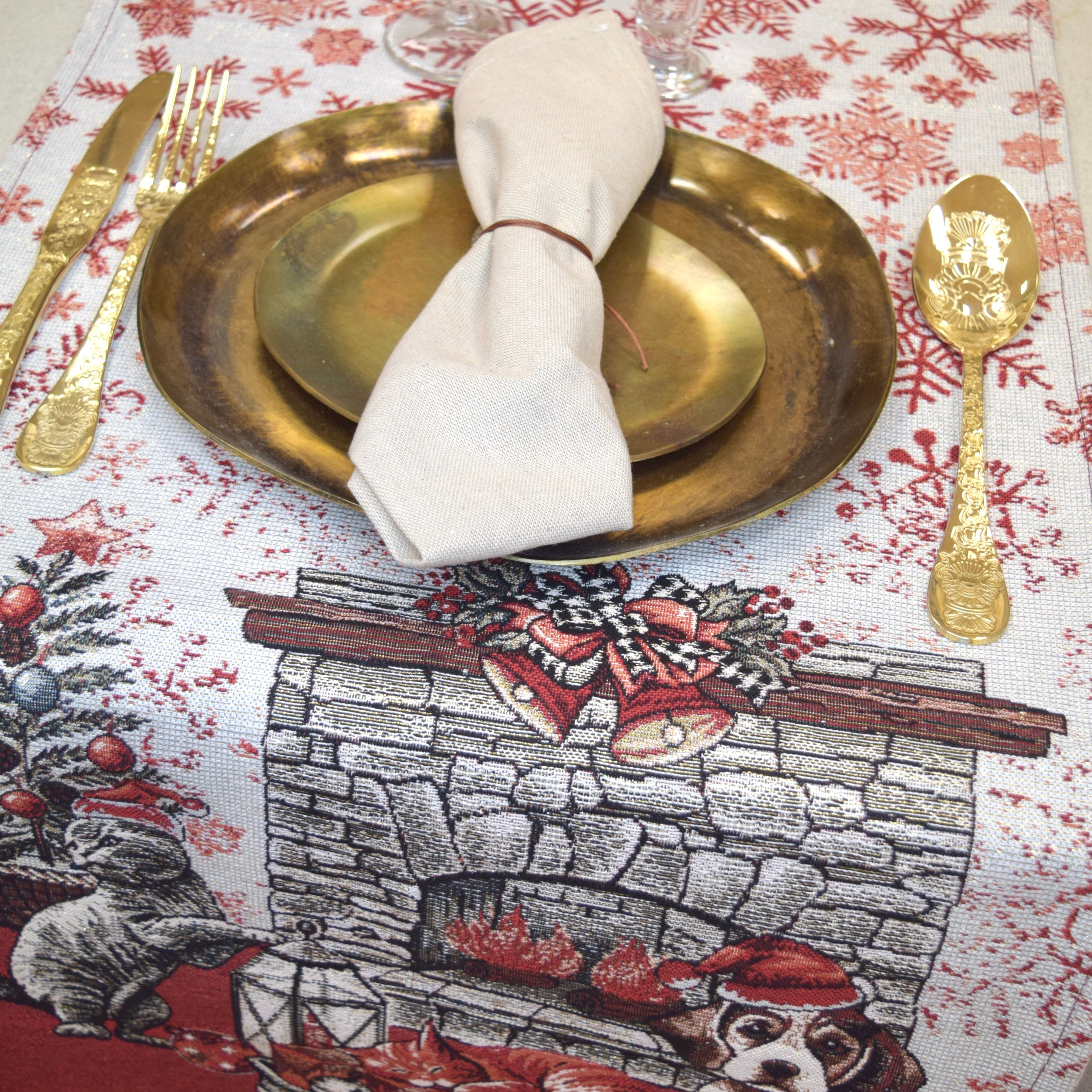 Aggiungi un tocco di eleganza alle tue tavole festive con il nostro runner natalizio realizzato in pregiato gobelin, misura 40x140 cm. Il gobelin è un tipo di tessuto jacquard a trama densa che lo rende resistente e compatto. Interamente fatto in Italia, presenta un design ricco di dettagli e colori vivaci grazie al lurex, evocando così l'atmosfera magica del Natale.
