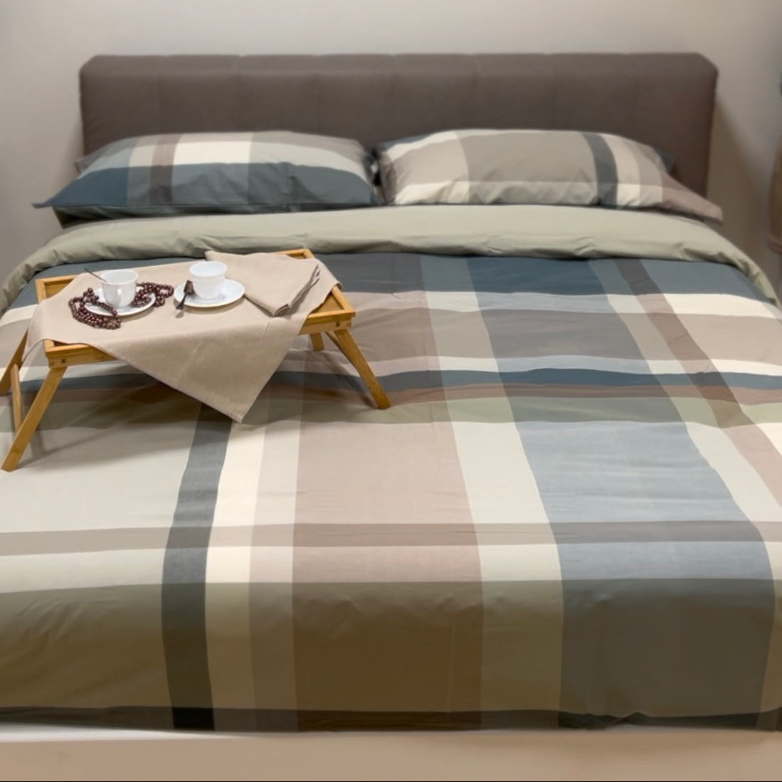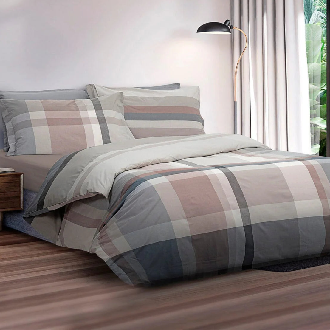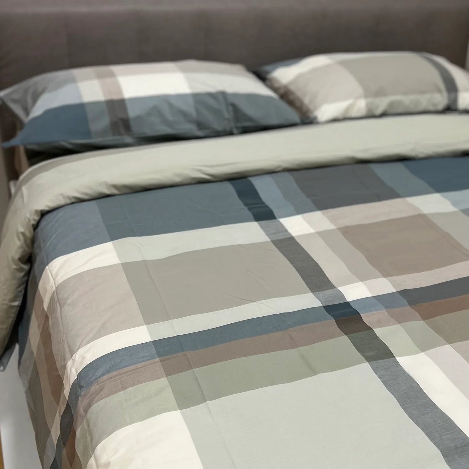 La Parure Copripiumino Lancaster è realizzata in 100% Percalle di Puro Cotone pettinato 200 fili. La parure è caratterizzata da toni freschi e moderni, creata grazie alla preziosa tintura in filo.