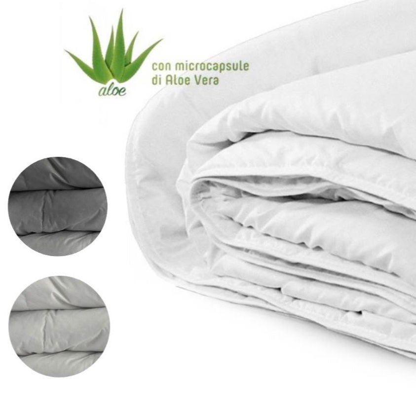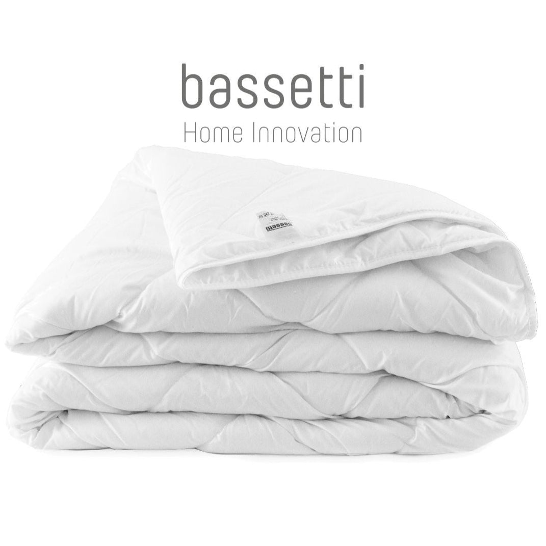 Piumino in microfibra con trattamento all'aloe vera, ideale per la mezza stagione; qualità firmata Bassetti! Può essere usato da solo o rivestito da sacchi copripiumini. Made in Italy.