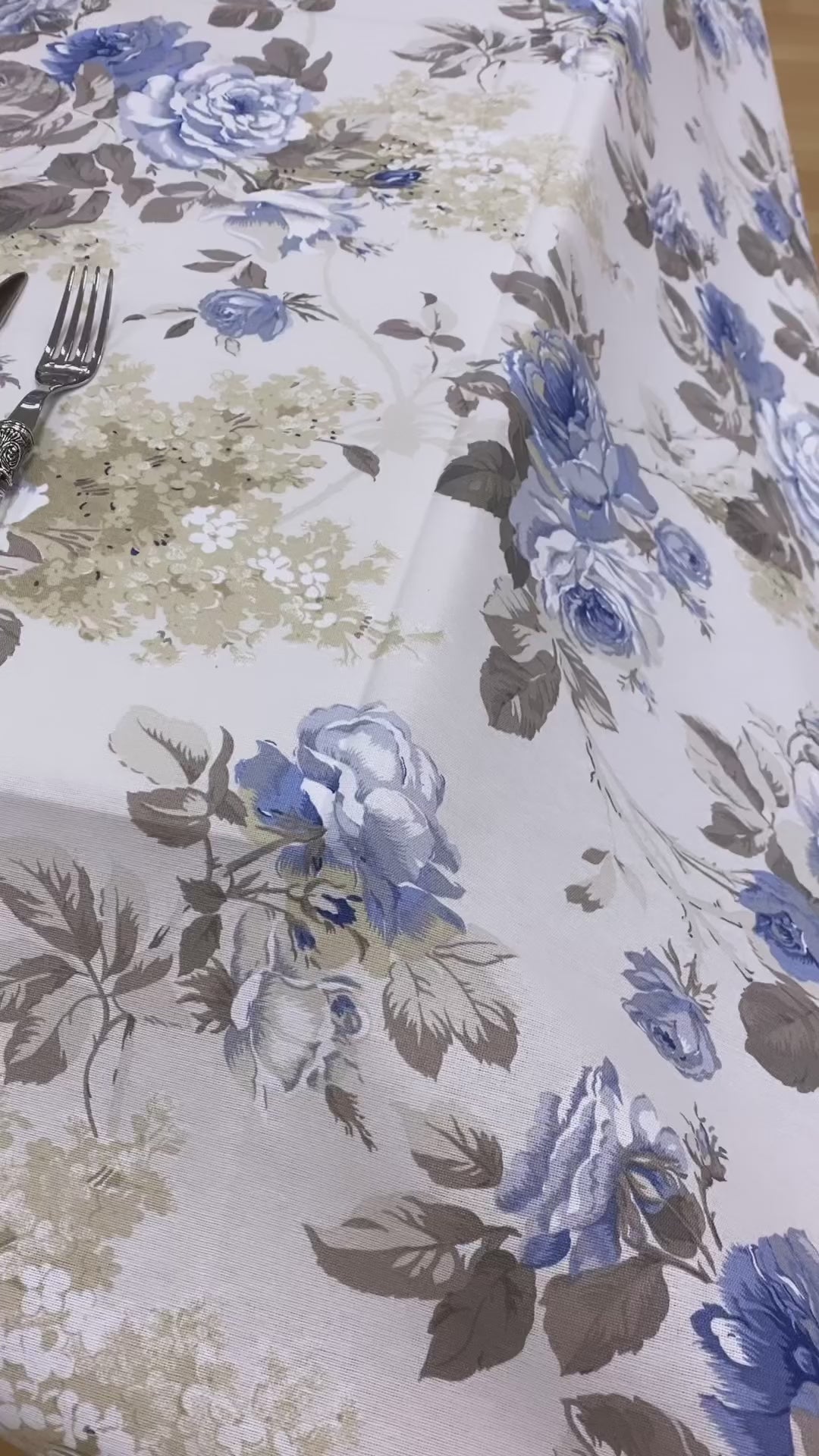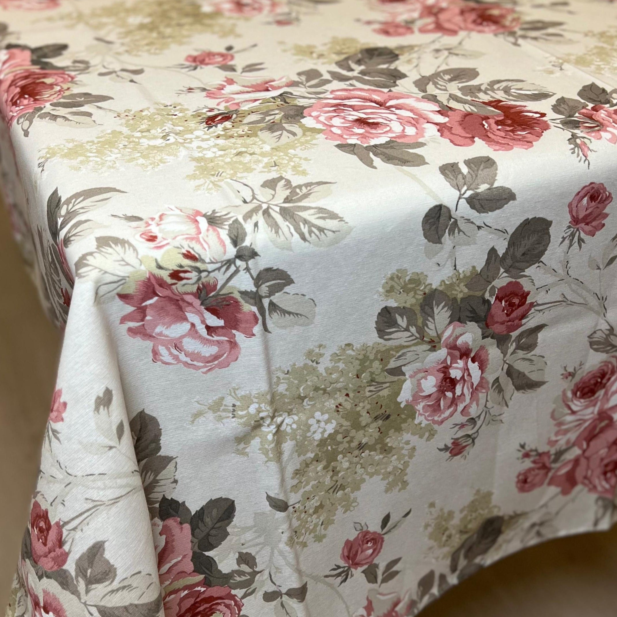ROSE tablecloth in 80% cotton and 20% polyester, to reduce shrinkage; available in 3 colors: light blue, gray, pink.