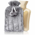 Morbidissima borsa per l'acqua calda in ecopelliccia disponibile in due colorazioni. Tessuto esterno 100% poliestere, interno 100% gomma.