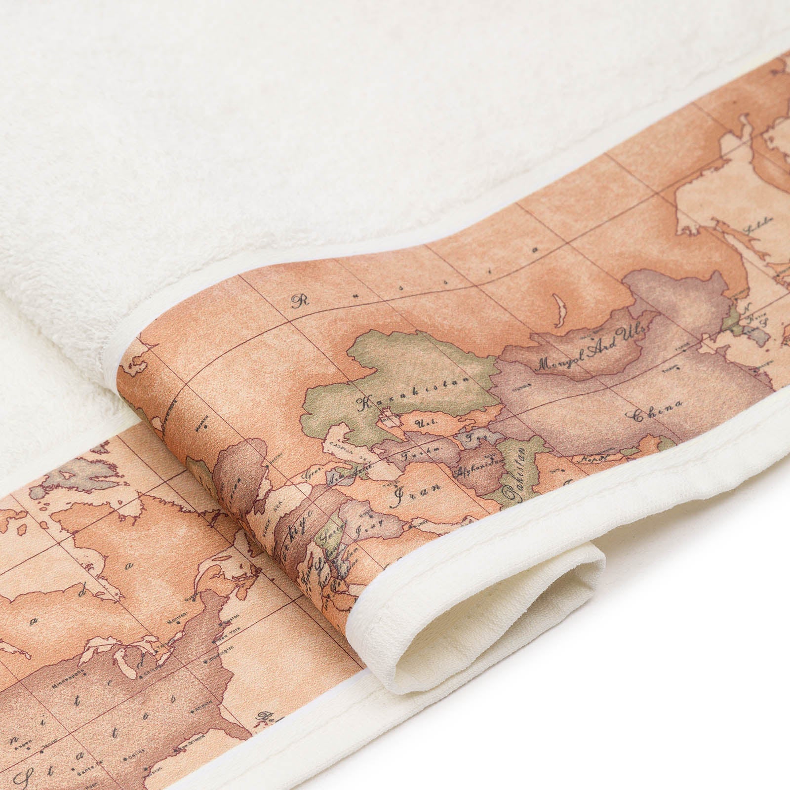 Regalati un tocco di lusso quotidiano con il telo impreziosito dall'inserto in stampa Geo Classic. La sua realizzazione in spugna di cotone 480 gr/mq assicura una carezza soffice e delicata sulla pelle. La balza realizzata in raso lucido, non restringe post-lavaggio.