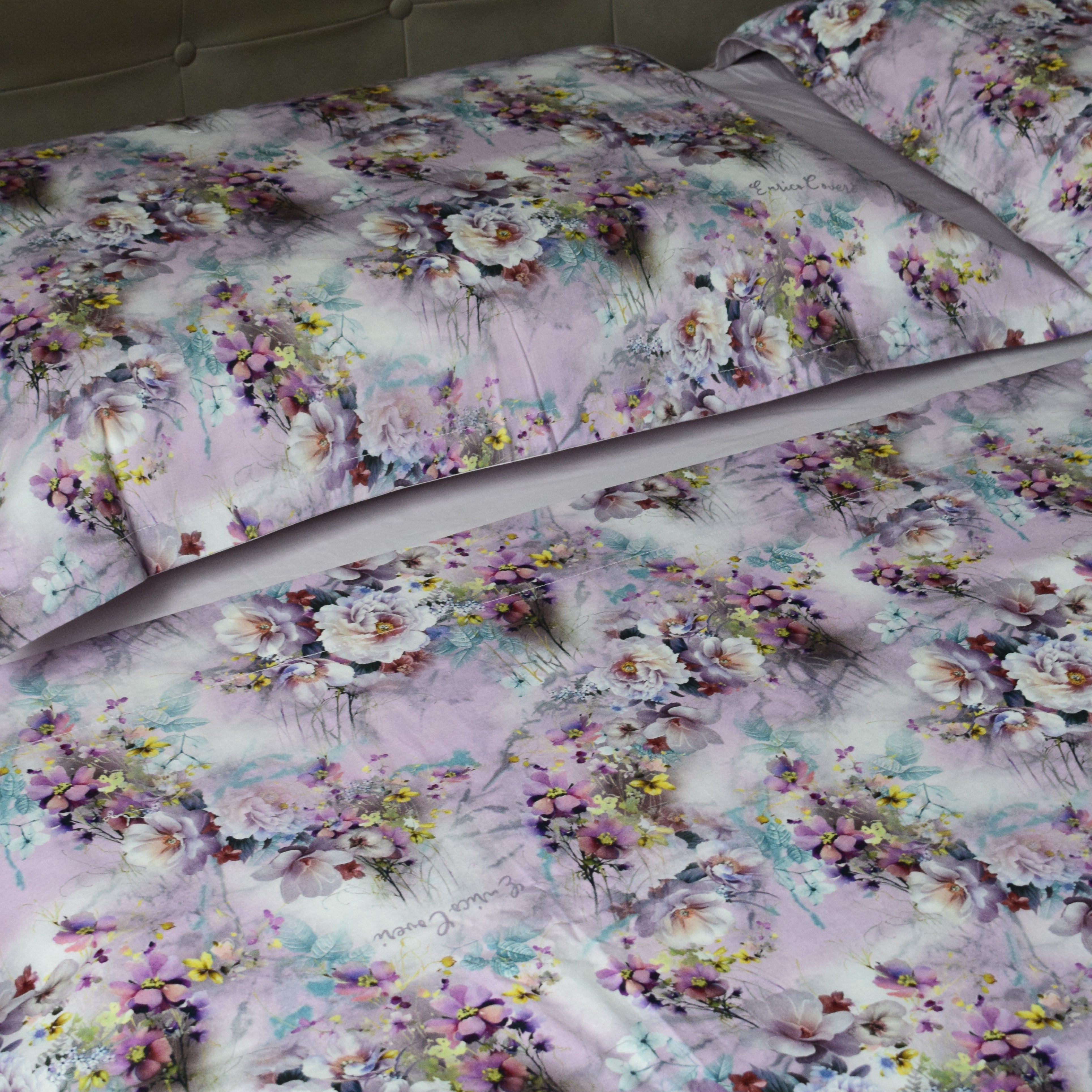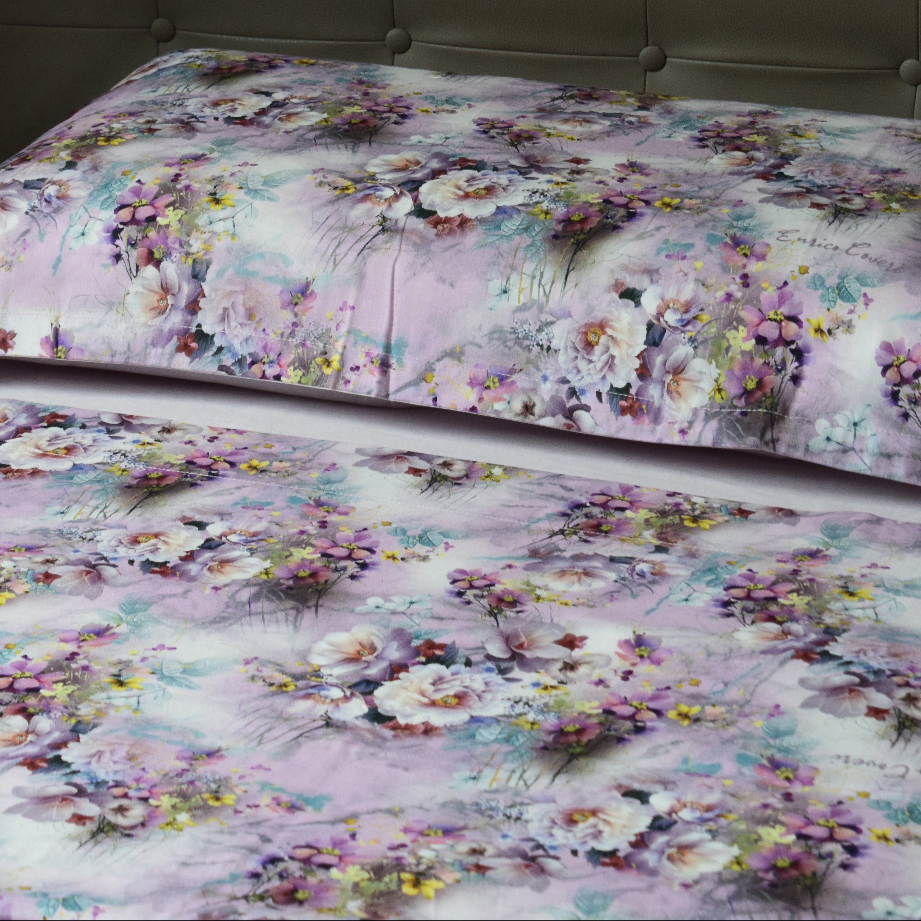 Completo lenzuola matrimoniale in percalle di puro cotone - Flori