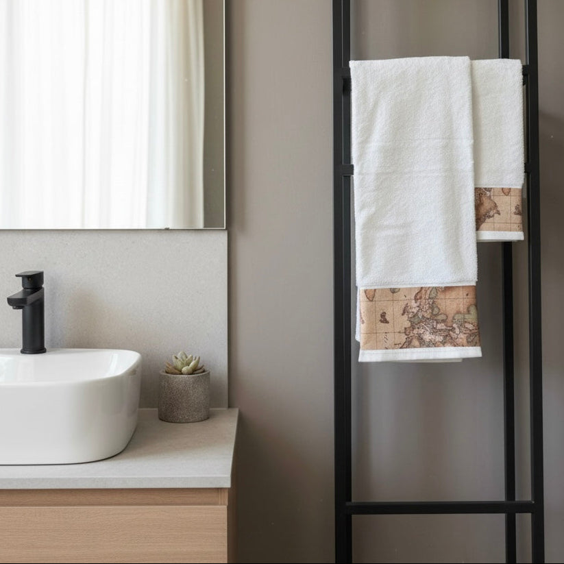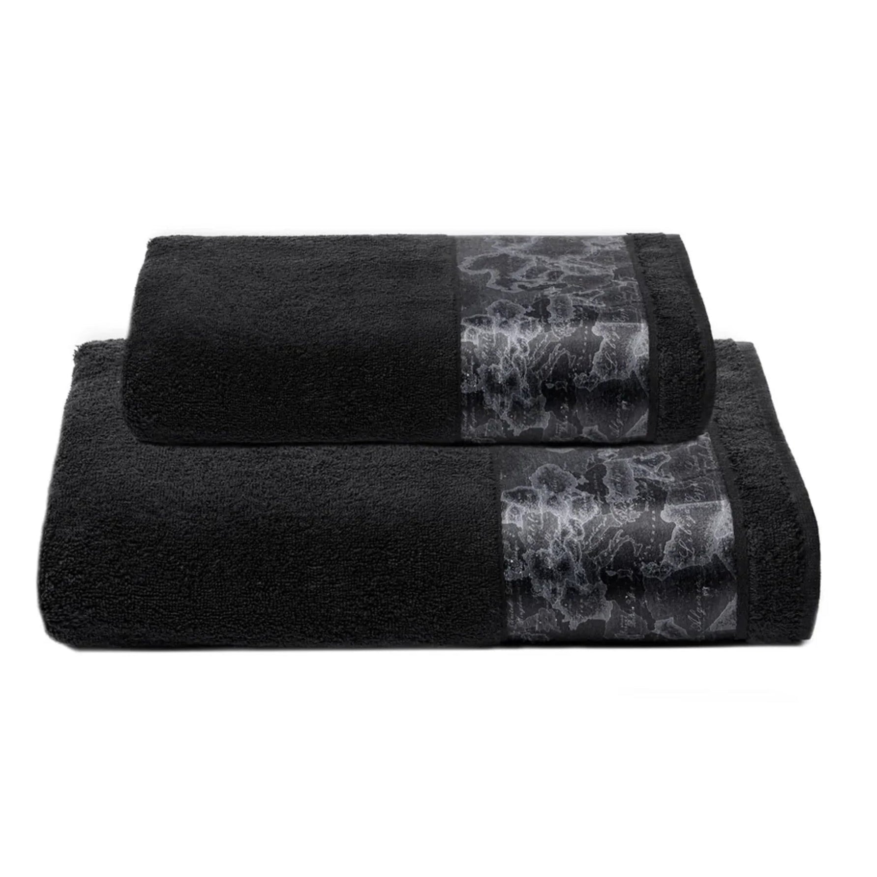 Regalati un tocco di lusso quotidiano con la nostra coppia asciugamani impreziosita dall'inserto in stampa Geo Classic. La sua realizzazione in spugna di cotone 480 gr/mq assicura una carezza soffice e delicata sulla pelle.