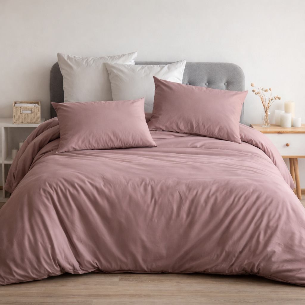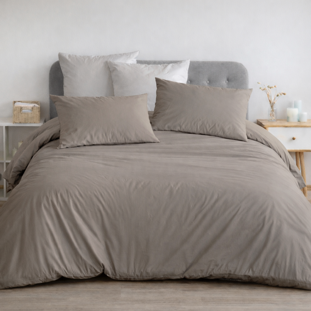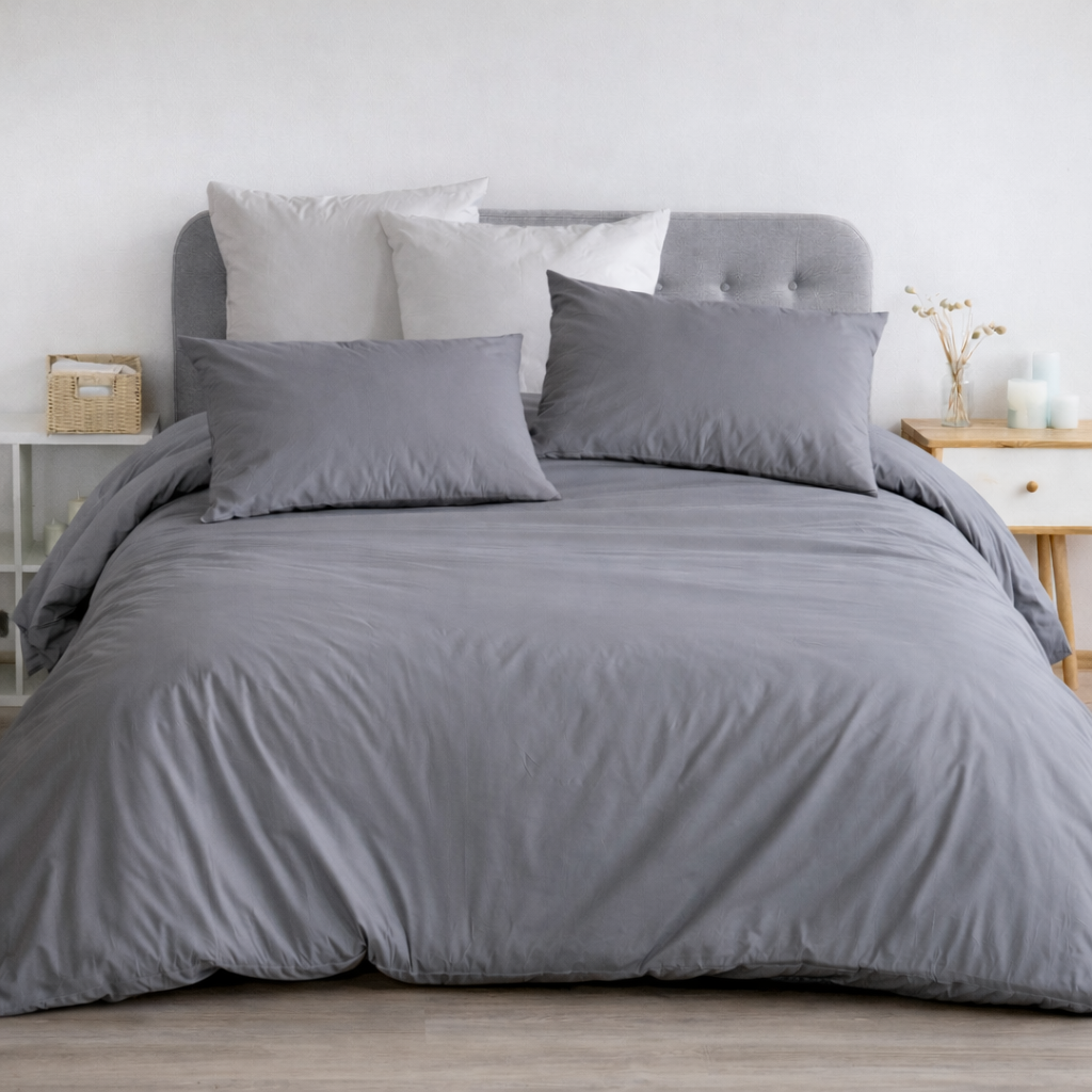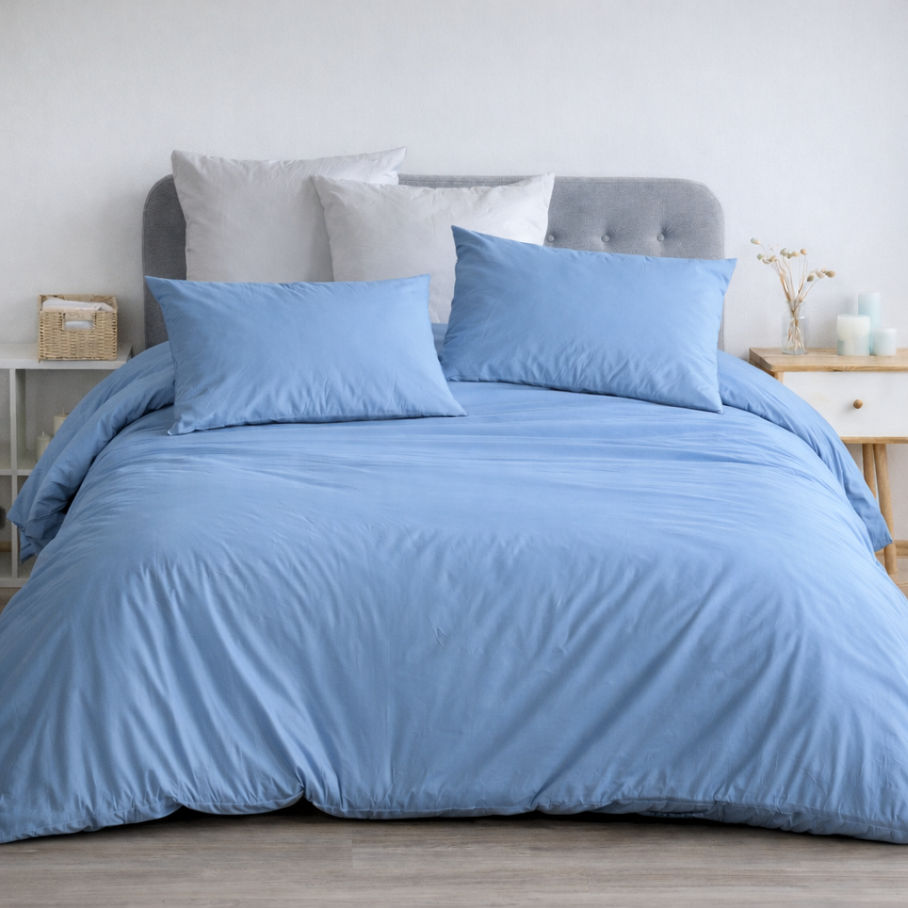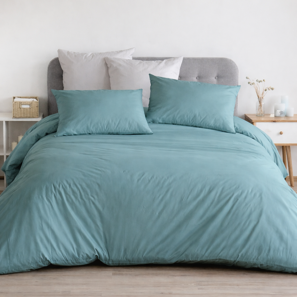 Parure Copripiumino matrimoniale realizzata in 100% percalle di puro cotone 200TC in tinta unita. Un prodotto interamente Made in Italy, che garantisce comfort e qualità; perfetto per chi cerca qualcosa di fresco e pratico.